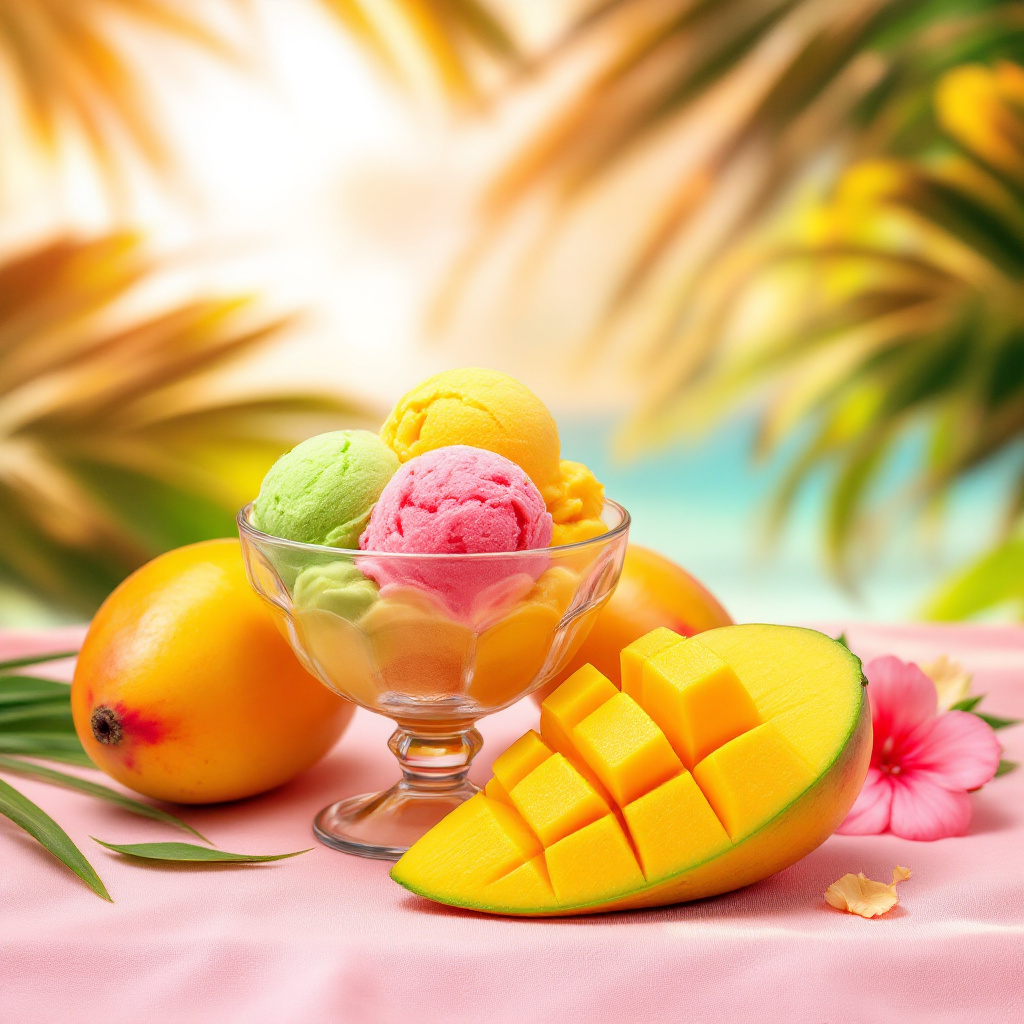 Ripe mango rich, golden, and dripping with tropical fruit sweetness. Bright accents of zesty lemon and fresh red raspberry add a splash of citrus sparkle and berry tang,